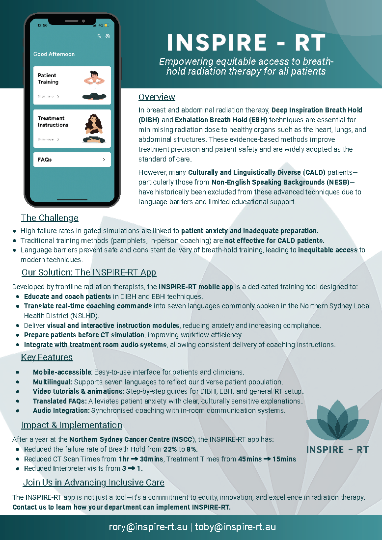 INSPIRE-RT was created by radiation therapists who saw a gap in care, particularly for patients from culturally and linguistically diverse backgrounds, and wanted to strengthen the support around them.